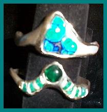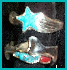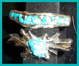 Abstract Morenci Turquoise Nuggets w/red coral 3 .03 diamonds between